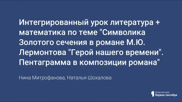 Интегрированный урок литература + математика по теме "Символика Золотого сечения в романе М.Ю. Лермонтова "Герой нашего времени". Пентаграмма в композиции романа"