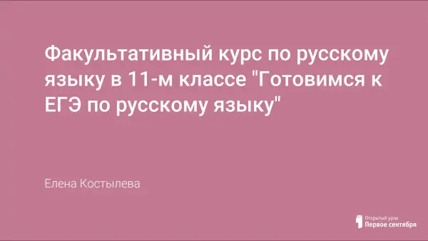Факультативный курс по русскому языку в 11-м классе "Готовимся к ЕГЭ по русскому языку" предназначен для подготовки учащихся к сдаче экзамена по русскому языку в форме ЕГЭ. Он содержит систематизацию и обобщение знаний учащихся за курс основной (полной) школы, углубляет знания учащихся, полученные в 10-м классе. Программа предусматривает теоретический материал (обобщающие беседы и лингвистический анализ текста).