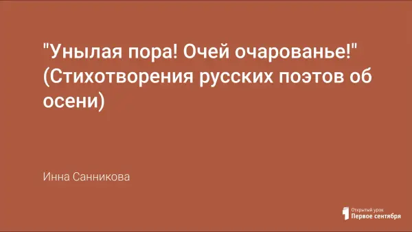 Урок русской литературы в 5-м классе. Конспект урока из цикла "Времена года", разработанного в рамках программы по литературе В.Г. Маранцмана. На уроке дети знакомятся с отрывком из поэмы И.А. Бунина "Листопад", со стихотворениями К.Д. Бальмонта "Поспевает брусника" и Н.А. Заболоцкого "Сентябрь". Большое внимание уделено произведениям изобразительного искусства и музыки, посвященным осени.
