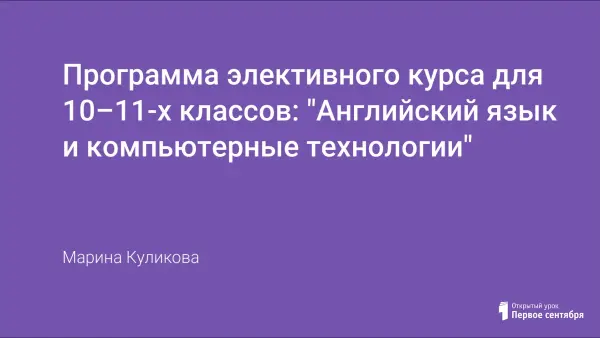 Данный курс называется межпредметным, так как построен на принципе интеграции двух учебных дисциплин: информатика и английский язык.