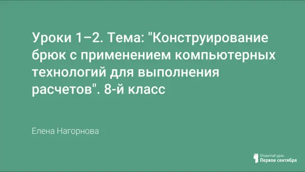 В ходе урока учащимся представляется конструирование брюк по новой, упрощенной технологии построения конструкции чертежа с применением зарубежных технологий.