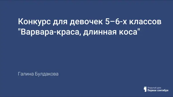 Внеклассное мероприятие направлено на выявление интеллектуальных и творческих способностей девочек, развитие чувства солидарности и здорового соперничества, пропаганду девичьей красы – длинной косы.