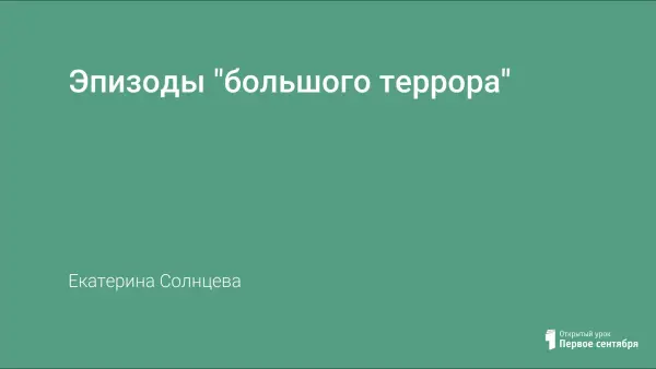 Урок "Эпизоды большого террора" проводится автором в 9 классе в рамках изучения темы "Политическая система сталинизма" в два этапа. Первый - это непосредственно урок в школе, работа с документами, с ксерокопией дела № 10294 из архива НКВД, знакомство с тематической выставкой книг. Второй этап - это посещение Бутовского полигона, которое производит сильнейшее впечатление на ребят.