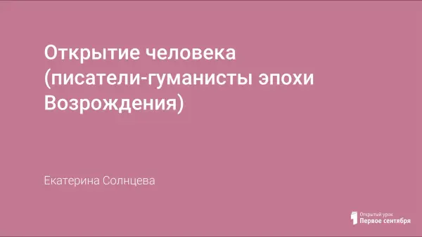 "Открытие человека" - это заключительный, третий урок по теме "Эпоха Возрождения" по истории в 7-м классе. Урок требует тщательной предварительной подготовки от учителя и учеников, эмоциональности и актерского мастерства от учителя в ходе проведения урока.