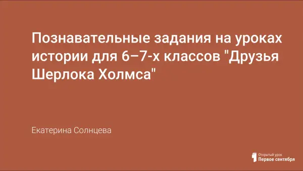 Варианты познавательных заданий по истории "Друзья Шерлока Холмса" для учащихся 6-го класса (тема "Образование и наука XI–XV веков", история средних веков) и учащихся 7-го класса (тема "Дворцовые перевороты", история России).