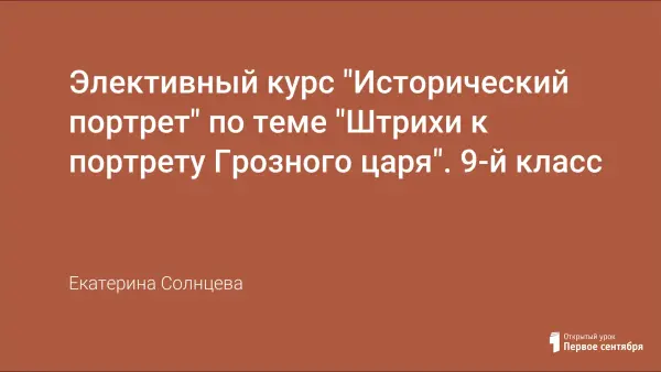 Цель занятия - рассмотреть многогранность и неоднозначность личности первого русского царя, используя произведения устного народного творчества (исторические песни), сочинения Ивана IV, произведения изобразительного искусства.