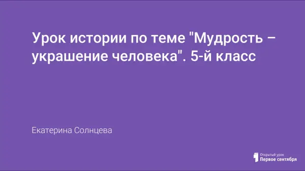 «Мудрость – украшение человека» - это урок истории для учащихся 5 класса в рамках изучения истории Древней Греции.