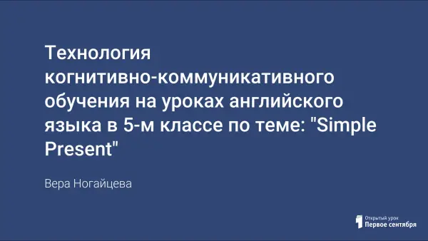 Представлено занятие по технологии когнитивно-коммуникативного обучения на уроках английского языка в 5-м классе по теме "Simple Present". На занятии формируются грамматические знания и первичные умения употребления Simple Present в коммуникативной речи.