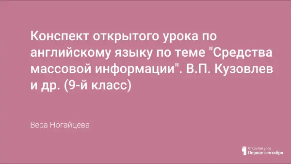 Конспект открытого урока по английскому языку в 9-м классе с целью формирования и развития навыков общения через активизацию понятий, связанных с телевидением, прессой, радио; формирования творческого и критического мышления учащихся через дискуссию и презентацию собственного мнения; повышения интереса к СМИ в своей стране и их влиянию на сознание, формирование жизненной позиции личности.