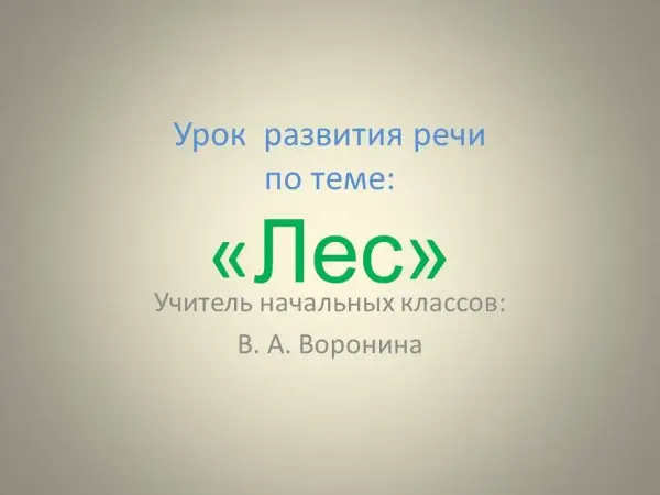 Цель урока: научиться различать виды лесов; понимать значение леса в жизни человека; уметь различать деревья по листве; познакомить с плодами деревьев; изучить строение дерева; воспитывать ответственное отношение к лесу; учиться обобщать, систематизировать; учиться строить речевое высказывание в устной форме.