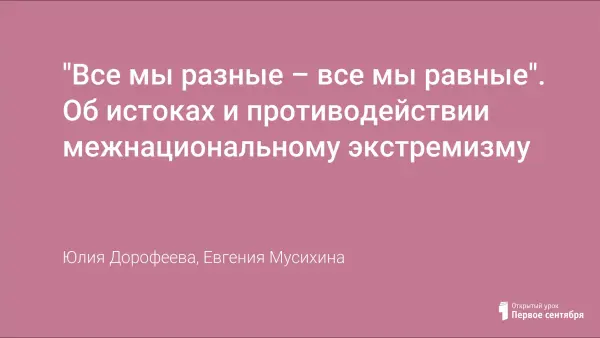 "Все мы разные – все мы равные". Об истоках и противодействии межнациональному экстремизму