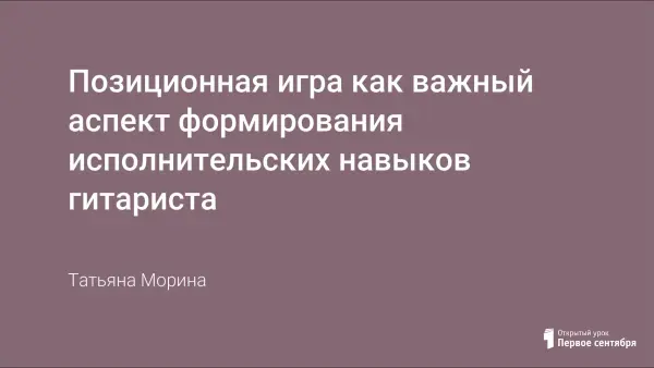 Статья посвящена важнейшему аспекту технического развития юного гитариста – позиционной игре, раскрывает авторский взгляд на основные проблемы начального этапа обучения: формирование и закрепление исполнительских навыков. В статье даны рекомендации по эффективному решению сложных педагогических задач.
