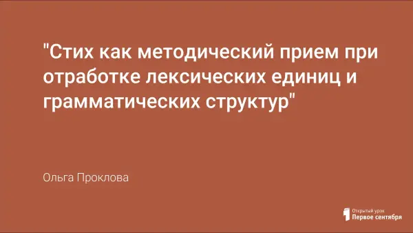 В своей статье автор говорит о приёме использования стиха на уроке иностранного языка для закрепления грамматических структур, лексических единиц, а также развития творческих способностей учащихся.