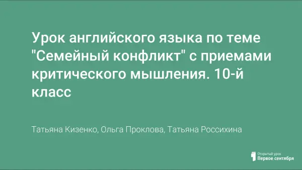 Урок английского языка по теме "Семейный конфликт" с приемами критического мышления. 10-й класс
