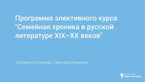 Программа элективного курса "Семейная хроника в русской литературе XIX–XX веков"