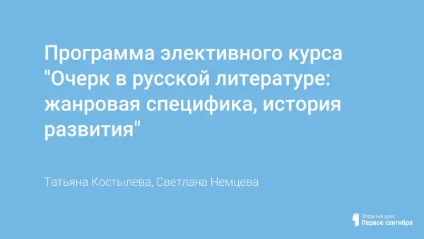 Программа элективного курса "Очерк в русской литературе: жанровая специфика, история развития"