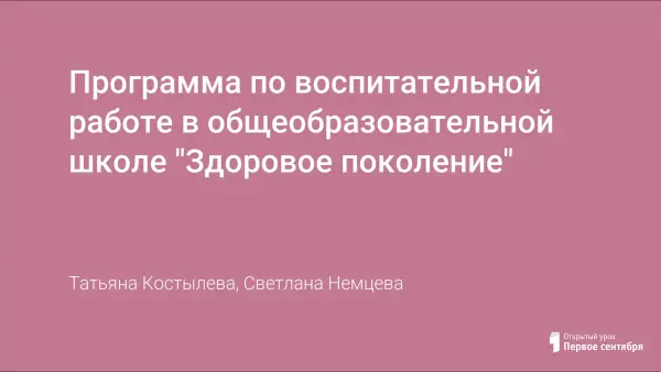 Программа по воспитательной работе в общеобразовательной школе "Здоровое поколение"