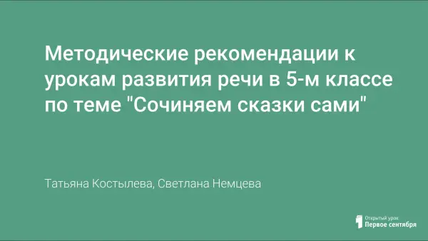 Методические рекомендации к урокам развития речи в 5-м классе по теме "Сочиняем сказки сами"