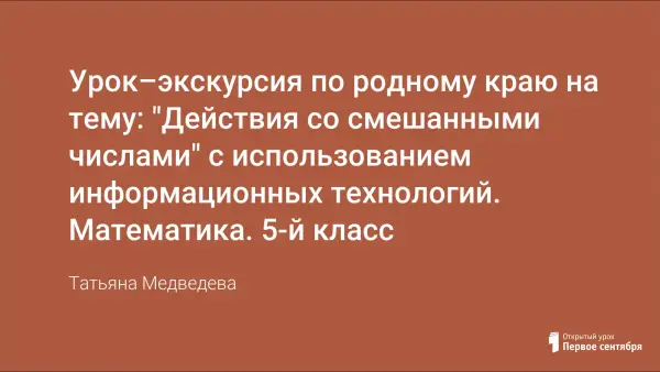 Урок обобщающего повторения по математике в 5-м классе с использованием информационных технологий. Урок проводится в виде экскурсии по родному краю. Задания подобраны с применением национально-регионального компонента. Использование регионального компонента в обучении математики способствует расширению кругозора учащихся, привитию интереса к родному краю, гордости за родную землю.