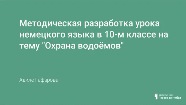 Данный урок предназначен для изучения немецкого языка как второго иностранного языка. Урок направлен на формирование лексических и грамматических навыков по теме «Охрана водоёмов», применение сформированных фонетических, лексических и грамматических умений и навыков в практической деятельности. В ходе урока используются фронтальные, индивидуальные и парные формы работы, разнообразные виды наглядности, технические средства обучения, а также различные методические приемы, позволяющие привить интерес к изучаемому предмету.