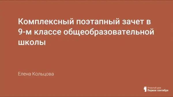 В работе представлена методика проведения комплексного поэтапного зачета в 9-м классе общеобразовательной школы
