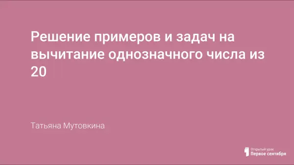 Урок математики во 2 классе специальной (коррекционной) общеобразовательной школе по теме «Решение примеров и задач на вычитание однозначного числа из 20».