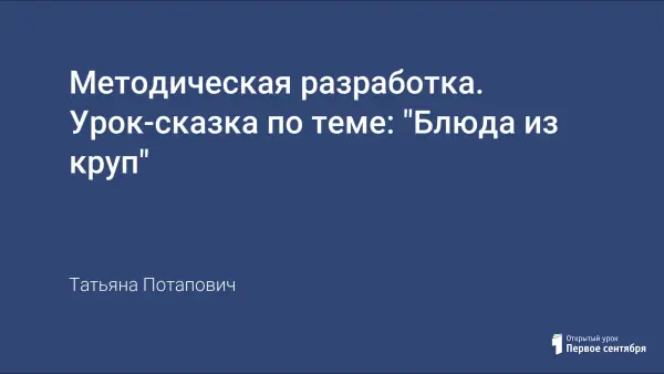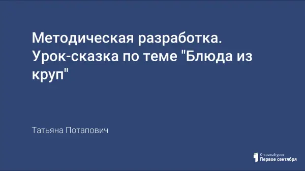 Представлен конспект урока-сказки по теме "Блюда из круп".