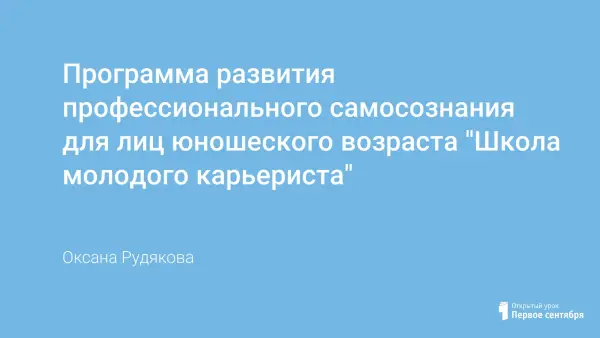 Программа "Школа молодого карьериста" направлена на оказание информационной поддержки и психолого-педагогической помощи лицам юношеского возраста в их профессиональном самоопределении. Цель программы: помочь лицам юношеского возраста сориентироваться в профессиональном выборе с учетом своих индивидуальных особенностей, способностей и возможностей, соотнеся их с требованиями будущей профессии, выстроить перспективу профессионального будущего и определить способы ее достижения.