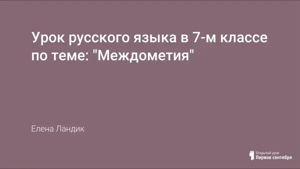 Данный урок направлен на освоение учениками 7-го класса теоретического материала по теме "Междометие", закрепление навыков проектной деятельности.