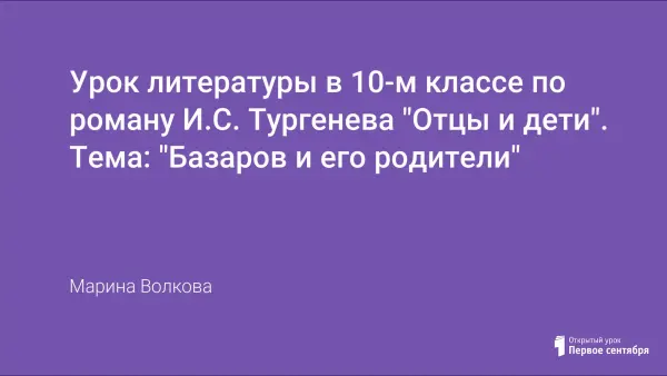 В старших классах особенно актуальна на уроках литературы проблема семьи, проблема отношений в семье. Семья - основа нравственного благополучия во все времена. Проблема взаимоотношений в семье имеет множество аспектов. Одним из направлений в решении вопросов семейных взаимоотношений является литература. Роман И.С. Тургенева "Отцы и дети" явился ответом на решение данной проблемы. Базаров - человек дела, между ним и его родителями нет духовного родства, но их объединяет наличие душевных качеств: любовь, искреннее дружелюбие, уважение. Горе родителей, потерявших своего сына, беспредельно. Дети ответственны за душевный покой своих родных людей. Их долгая жизнь - в руках сыновей и дочерей.