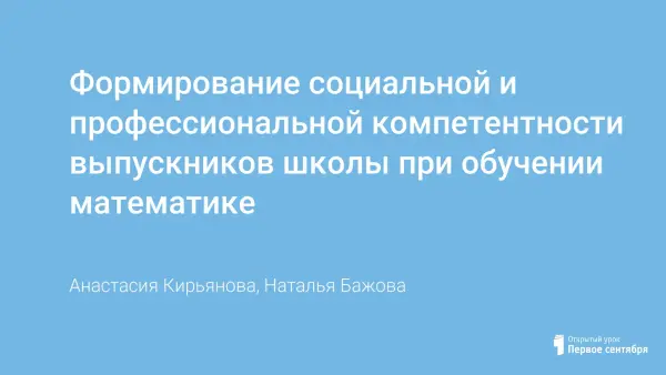 Формирование социальной и профессиональной компетентности выпускников школы при обучении математике