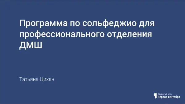Программа по сольфеджио повышенного уровня сложности разработана для одарённых детей – учащихся специализированных классов ДМШ, нацеленных на продолжение образования в средних и высших музыкальных учебных заведениях.