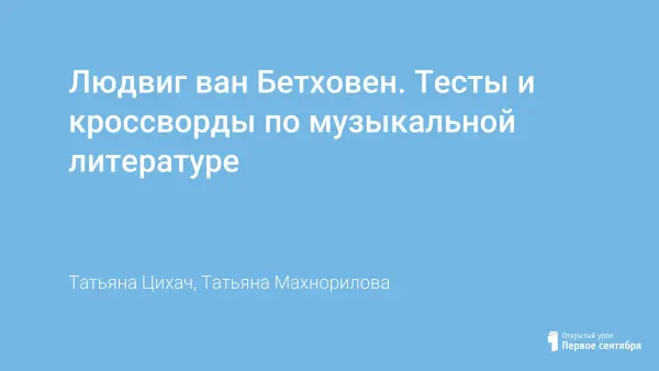 Людвиг ван Бетховен. Тесты и кроссворды по музыкальной литературе