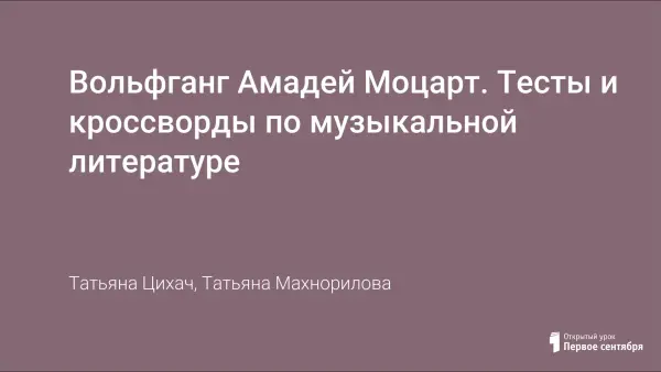 Вольфганг Амадей Моцарт. Тесты и кроссворды по музыкальной литературе