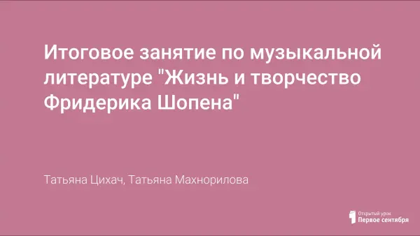 Итоговое занятие по музыкальной литературе "Жизнь и творчество Фридерика Шопена"