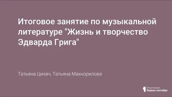 Итоговое занятие по музыкальной литературе "Жизнь и творчество Эдварда Грига"