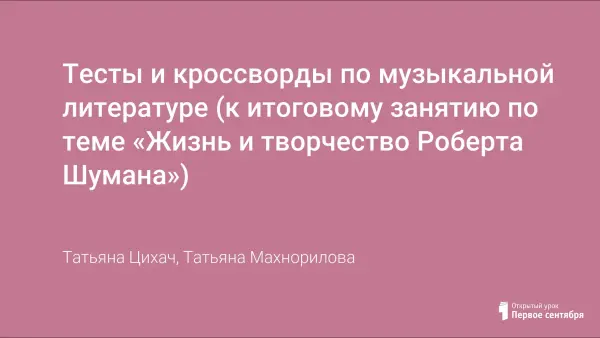 Тесты и кроссворды по музыкальной литературе (к итоговому занятию по теме «Жизнь и творчество Роберта Шумана»)