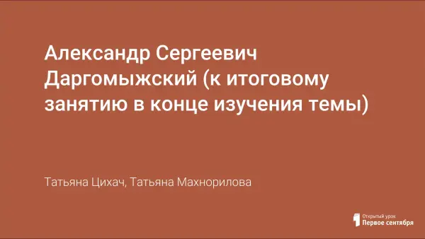 Александр Сергеевич Даргомыжский (к итоговому занятию в конце изучения темы)