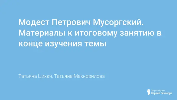 Модест Петрович Мусоргский. Материалы к итоговому занятию в конце изучения темы