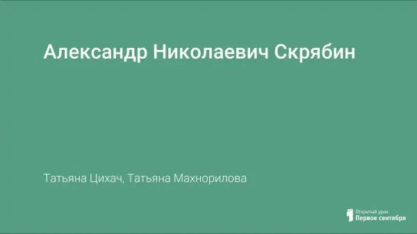 В статье представлен один из возможных вариантов итогового занятия по теме «Александр Николаевич Скрябин». Закрепление изученного материала дано в занимательной форме (тест и кроссворд).