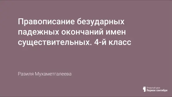 Цели урока:учить детей различать и проверять безударные окончания существительных одного и того же склонения; формировать навык правописания окончаний существительных; отрабатывать умение решать орфографические задачи в окончаниях имён существительных.