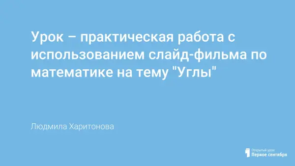Урок математики в 5-м классе представлен в виде практической работы с применением слайд-фильма «Углы», выполненного автором. На каждый этап урока указан необходимый для применения слайд.