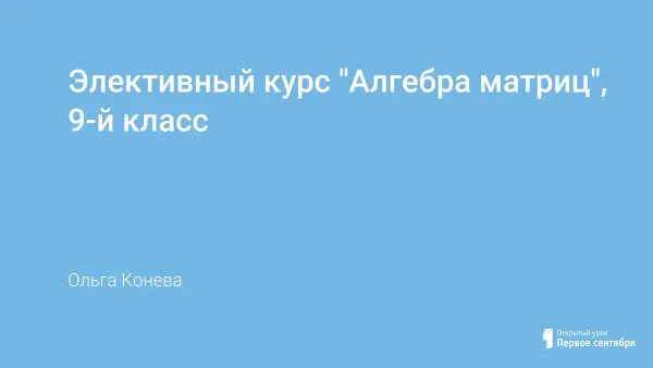 Данная программа «Алгебра матриц» является элективным курсом для учащихся 9 классов. На основе полученных знаний и с помощью матричной символики в профильном математическом классе изучается курс «Математическая статистика».