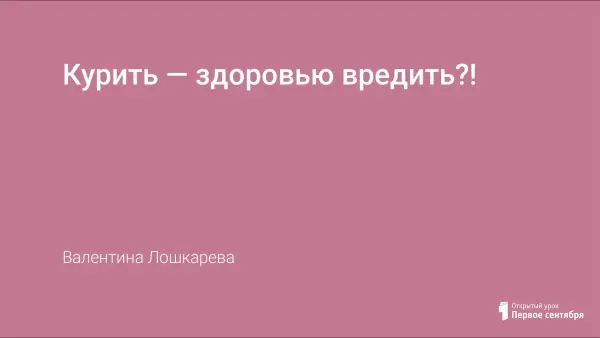 Задача урока - разобраться, действительно ли курить - здоровью вредить. Учащиеся выясняют, каким образом никотин воздействует на организм человека, и к каким последствиям это может привести.
