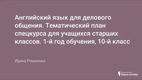 Настоящий курс разработан для учащихся старшего звена средней полной общеобразовательной школы и призван не только дать базовые навыки общения и работы в перспективной тематике, но и расширить возможности трудоустройства будущих выпускников школы. Курс ориентирован на активное овладение тем материалом, который в нем содержится, и предполагает самые разнообразные речевые действия в ходе овладения данной деловой лексикой: обсуждение материала на языке, переводы, выполнение специальных упражнений, деловые игры в условиях аудиторного обучения.