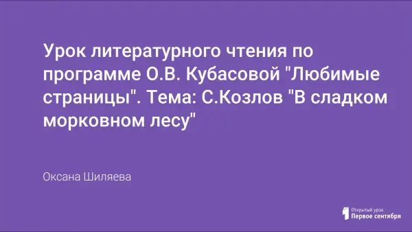Урок литературного чтения по программе О.В. Кубасовой "Любимые страницы". Тема: С.Козлов "В сладком морковном лесу"