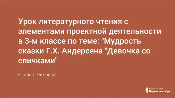 Урок литературного чтения с элементами проектной деятельности в 3-м классе по теме: "Мудрость сказки Г.Х. Андерсена "Девочка со спичками"