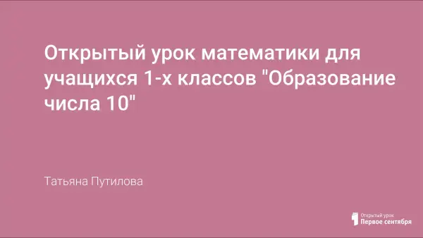 Представлен конспект открытого урока математики для учащихся первого класса по теме "Образование числа 10". Целью урока является знакомство с числом 10 и понятием двузначного числа. Задания носят развивающий характер обучения, направлены на поиск ребёнком самостоятельного решения.