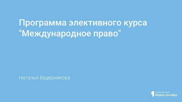 Программа элективного курса "Международное право" предназначена для учащихся 10-го класса социально-экономического профиля.