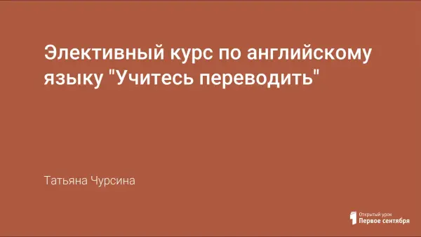 Элективный курс призван дать учащимся представление о сущности процесса перевода, основных принципах и понятиях теории и практики перевода, а также направлен на постижение детьми психологии и образа мышления английского народа, сопоставление менталитета русского и английского человека.